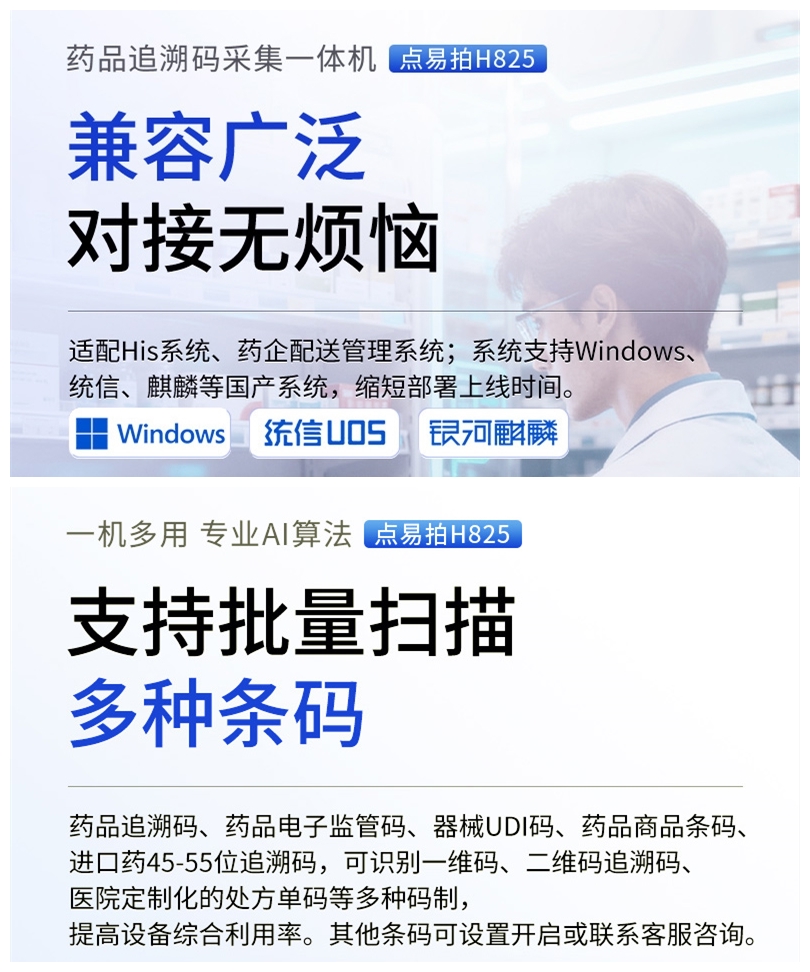 点易拍药品追溯码一体机是连接国家药品追溯政策和医疗机构日常操作的“桥梁”。它通过技术手段将繁琐的合规要求转化为高效、准确的操作,最终实现保障患者用药安全、提升医疗机构管理效率、守护医保基金等多重目标。