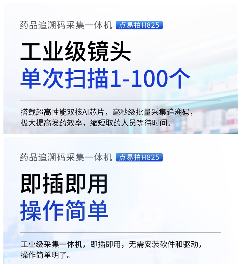 点易拍药品追溯码一体机是连接国家药品追溯政策和医疗机构日常操作的“桥梁”。它通过技术手段将繁琐的合规要求转化为高效、准确的操作,最终实现保障患者用药安全、提升医疗机构管理效率、守护医保基金等多重目标。