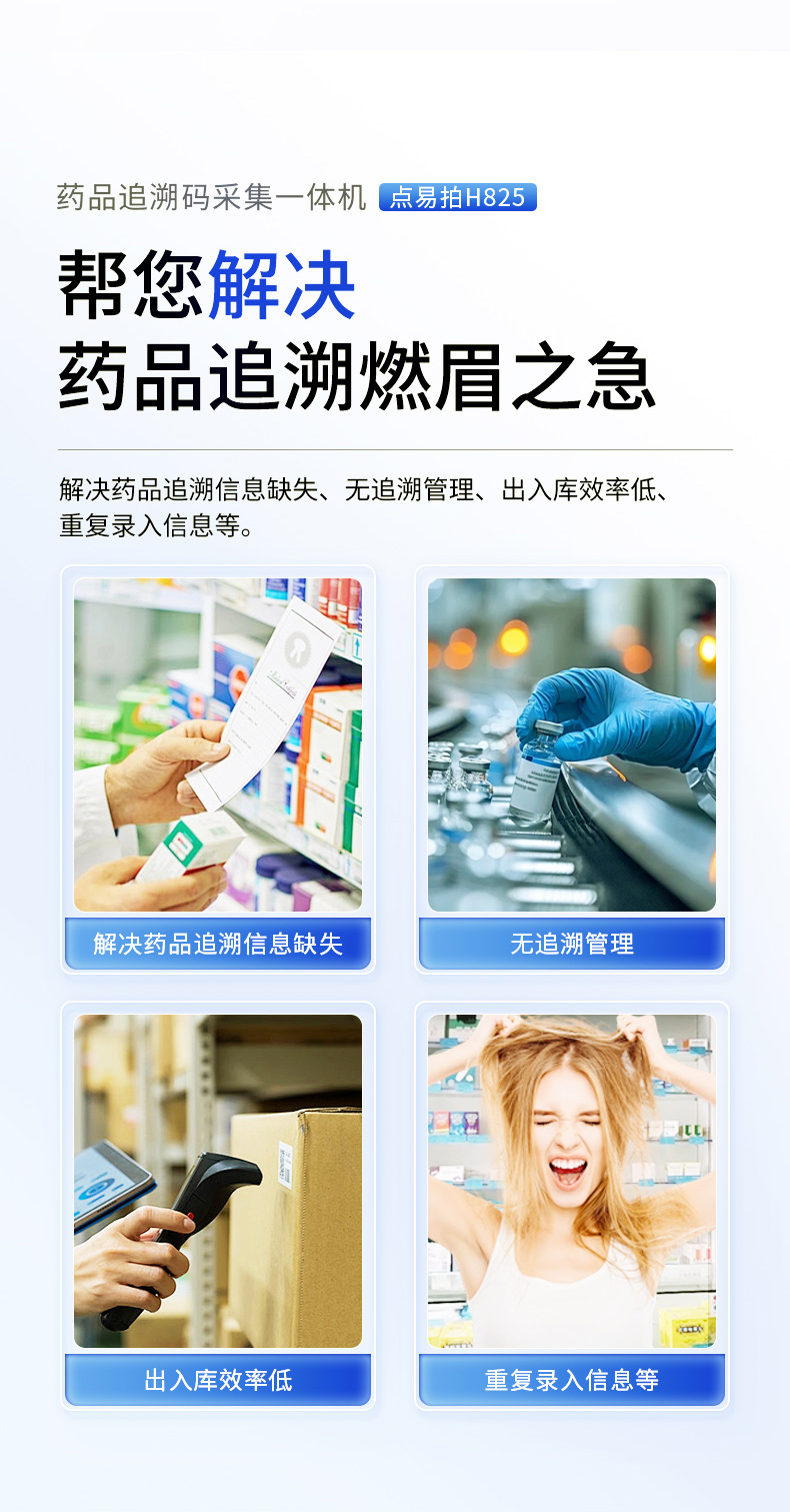点易拍H825药品追溯码一体机的各项特性,直指药品流通管理中的核心痛点,能为您带来切实的业务提升:
